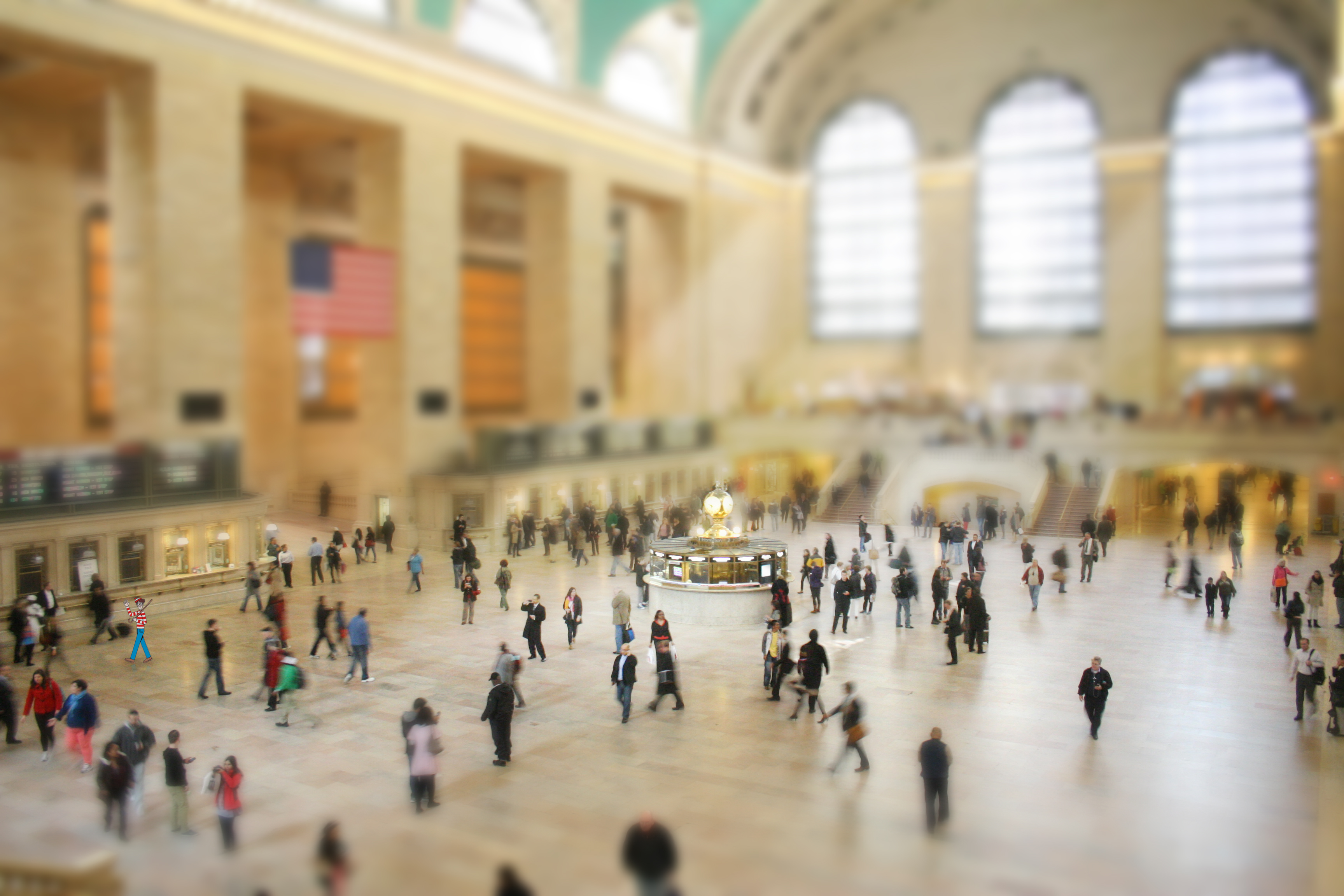 I used to love the Where’s Waldo books as a kid. In fact, I remember trying to convince my Mom to let me “read” the little blurbs in the corner during my required reading time for homework way back in the day. Took this photo after a recent train ride to the Grand Central in the City, played with the depth of focus with Photoshop and decided just for fun to throw my old buddy in there – can you find him? (click image for full size)