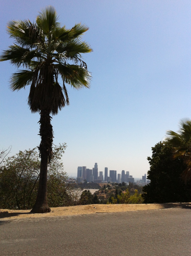 A palm overlooking downtown LA on a beautiful spring day.